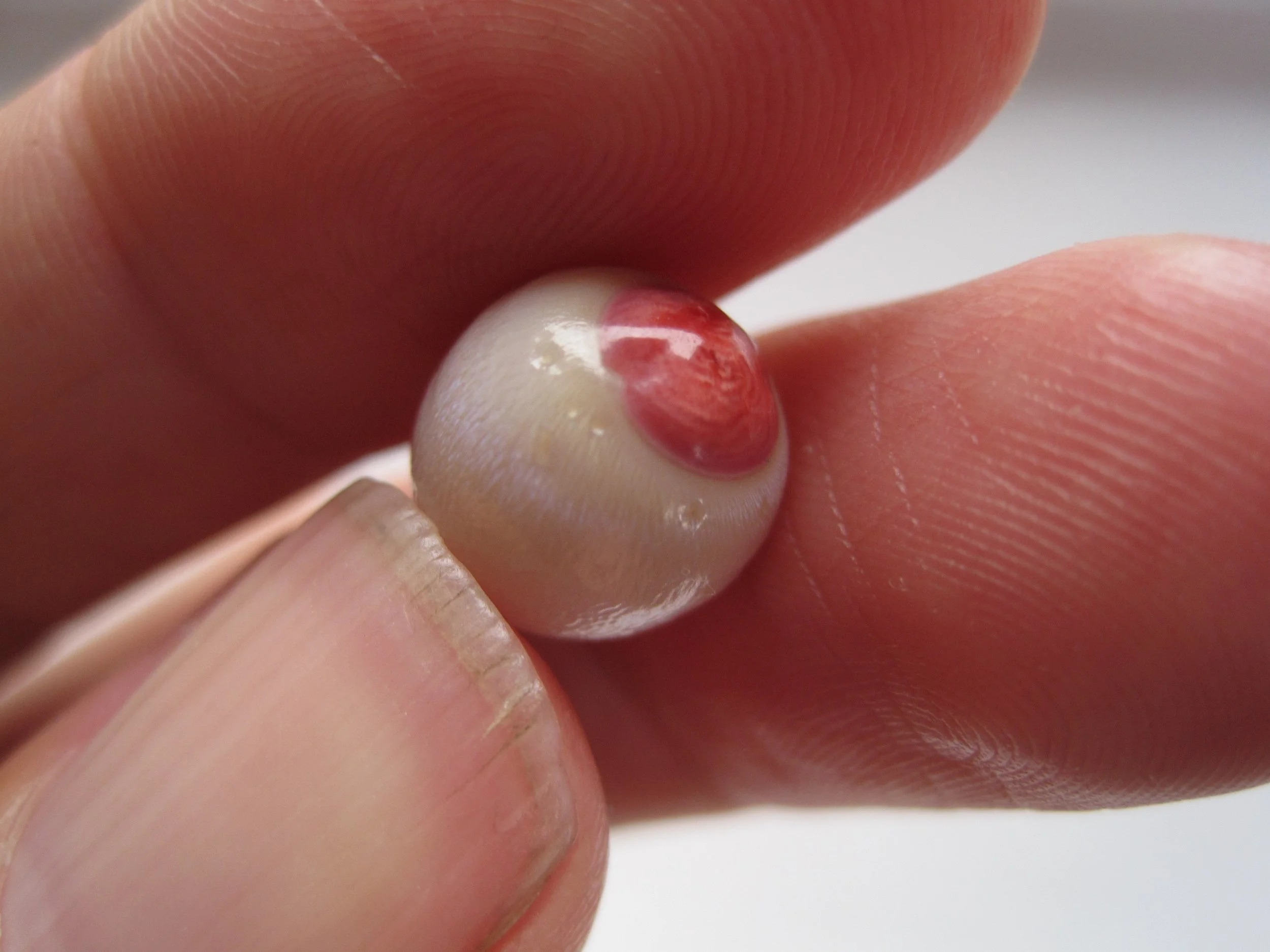 It has been estimated that approximately 1 in 10,000 conch produce a pearl, and of these, only a few possess the color, shape, and flame pattern necessary to be considered a gem. While the color of conch pearls varies greatly, they are most often found as white, brown, beige, yellow, orange, pink, or red (the later two being the most sought-after). Conch pearls that exhibit a strong chatoyant like phenomenon (flame) are considered the most valuable and are coveted by collectors . Like all pearls, conch pearls are produced by a living organism and are sensitive to acids, solvents, and long exposure to sunlight.